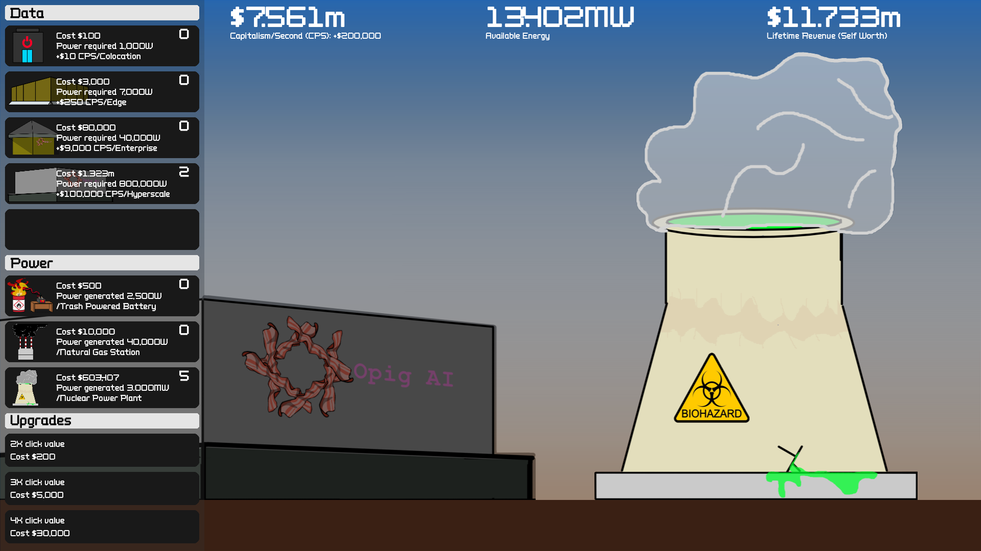 Be a capitalist pig and build your AI mega corporation. Every thing you build and destroy has a cost. Make sure to stick around for the not so secret ending (it'll only take about 10 minutes of your time)!